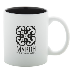 Bílý keramický hrnek, barevný uvnitř, 350 ml. Vygravírované logo je do barvy vnitřku. V dárkové krabičce.
