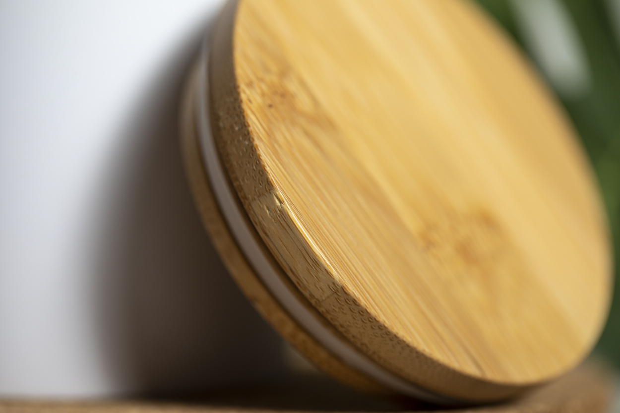 Keramický hrnek v matném provedení s bambusovým víčkem, 370 ml. V krabici z kraftového papíru.