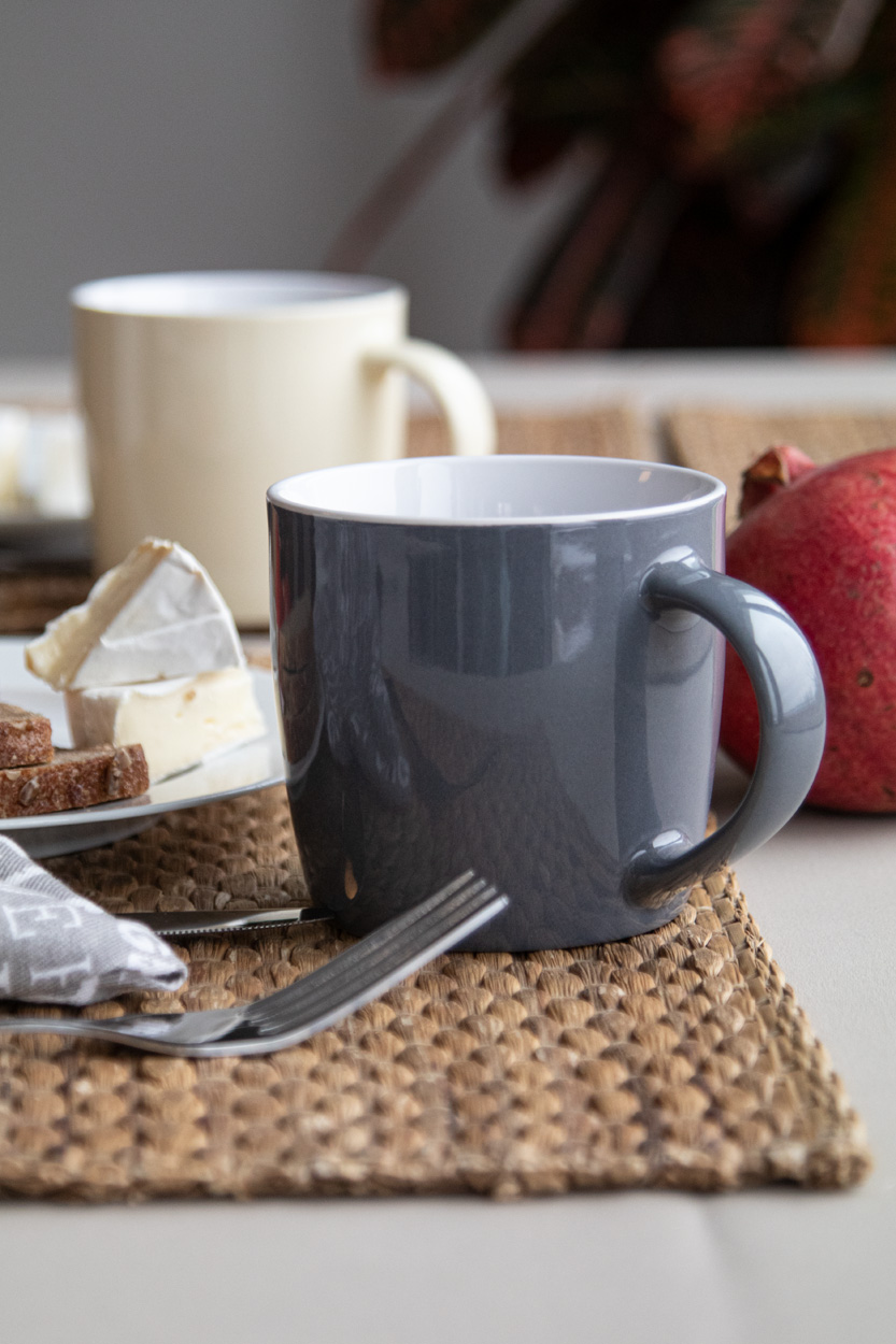 Vysoce kvalitní barevný keramický hrnek s bílým vnitřkem, 370 ml. V kraftové papírové krabici.