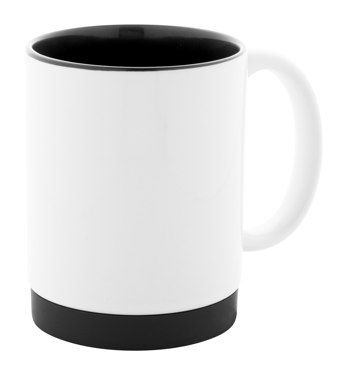 Keramický hrnek na sublimaci s barevným vnitřkem a silikonovým kroužkem v odpovídající barvě, 300 ml. V bílé papírové krabici.