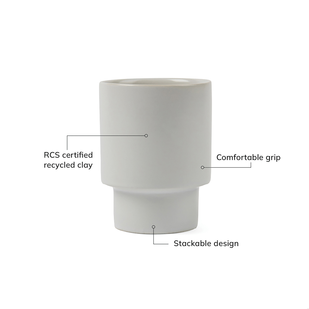 Vylepšete svou kávu nebo čaj hrnkem Nagano pure, který je vyroben z částečně recyklované hlíny. V tomto hrnku se snoubí jednoduchost s moderním nádechem skandinávského designu. Maximální objem 300 ml. Certifikace RCS zaručuje, že celý dodavatelský řetězec recyklovaných materiálů je certifikován. Celkový obsah recyklovaných materiálů se odvíjí od celkové hmotnosti výrobku. Tento výrobek obsahuje 10 % recyklované hlíny s certifikací RCS.