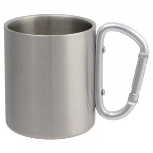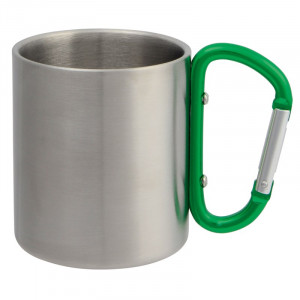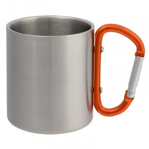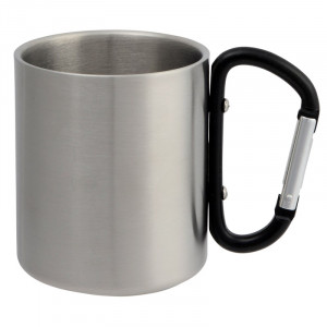 Hrnek z nerezové oceli, dvoustěnný: objem cca 220 ml, s barevnou karabinou