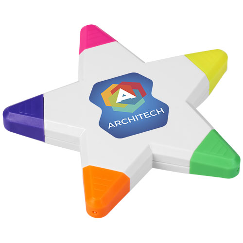 Pět jasně barevných zvýrazňovačů ve formě hvězdy.