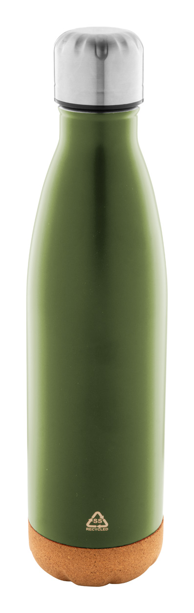 Dvoustěnná vakuově izolovaná láhev z recyklované nerezové oceli s přírodním korkem. 500 ml.