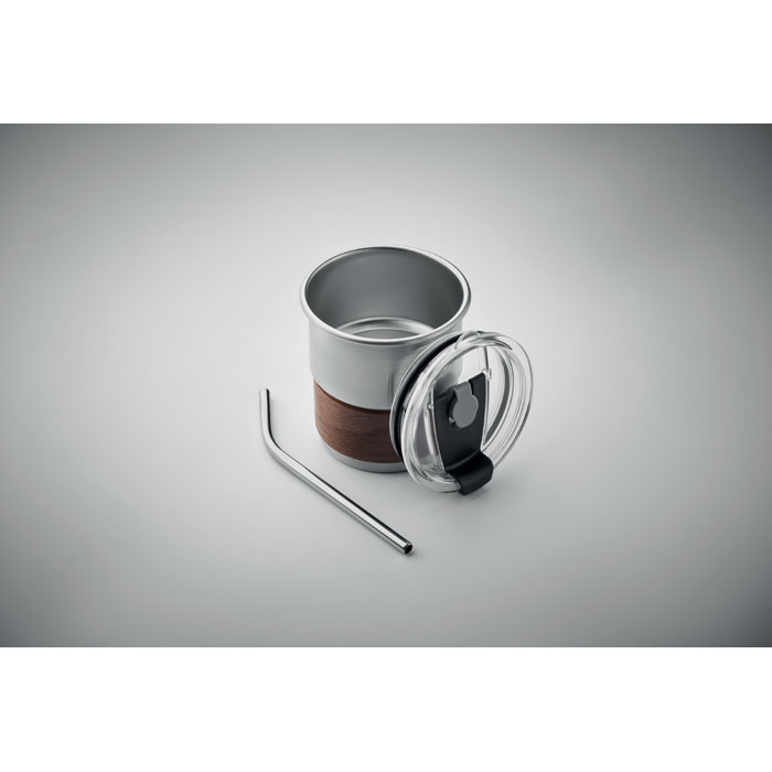 Jednostěnný pohárek z recyklované nerezové oceli (90 % recyklované nerezové oceli a 10 % nerezové oceli) s odnímatelným úchytem z akáciového dřeva. Víčko s pítkem a nerezovým brčkem. Objem: 260 ml.