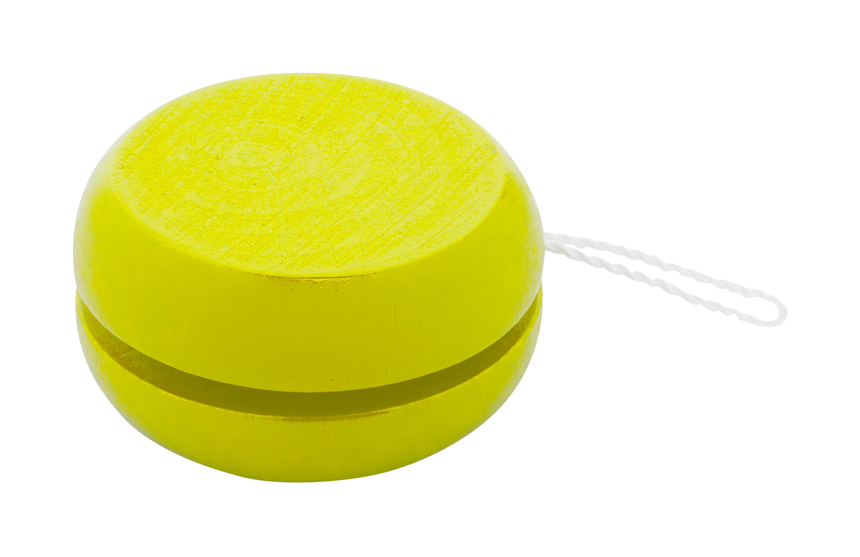Barevné dřevěné jo-jo s bavlněnou šňůrkou.