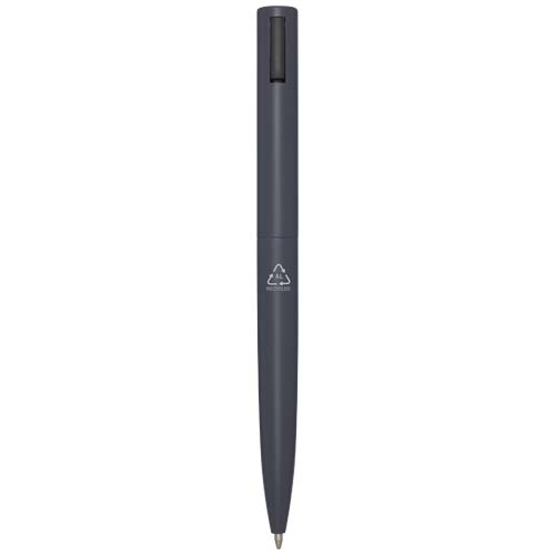Kuličkové pero s horní částí těla vyrobenou z recyklovaného plastu a spodní částí z recyklovaného hliníku. Spona je vyrobena ze železa. Barva inkoustu: Modrá. Délka psaní: 1000 metrů. Rozměr hrotu: 1,0 mm.
