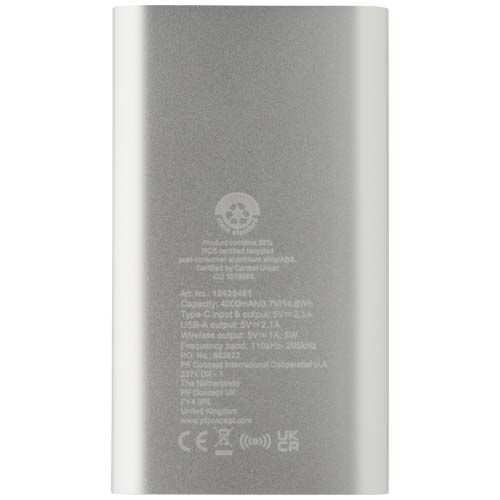 Juice 4000mAh bezdrátová powerbanka typu C z recyklovaného hliníku