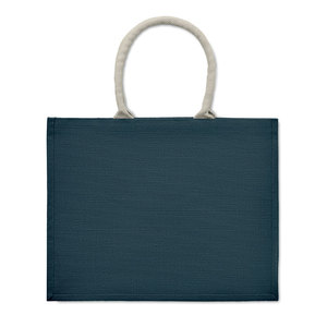 Jutová laminovaná nákupní nebo plážová taška s bavlněným uchem. Krátká ucha.