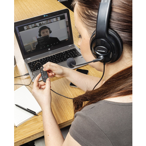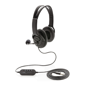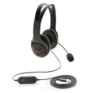 Kancelářský USB headset s integrovanou zvukovou kartou a ovládáním hlasitosti. Stereo zvuk a kvalitní mikrofon zajišťují bezchybnou komunikaci během on-line rozhovorů nebo videokonferencí. Pohodlné provedení přes hlavu na uši umožňuje dlouhodobé použití. Kompatibilní s PC a Mac®. Včetně 2m dlouhého USB A kabelu pro optimální spojení. Vyrobeno z ABS.