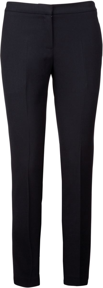 Úzký střih, elastický pás vzadu pro optimální pohodlí, nohavice s neviditelnými lemy, zip se skrytým háčkem a knoflíkem, 2 šikmé kapsy vpředu a 2 zadní kapsy s lemováním, pratelné na 40°, chemické čištění, nelze sušit v sušičce, vnitřní délka nohavic 30 palce (78cm)