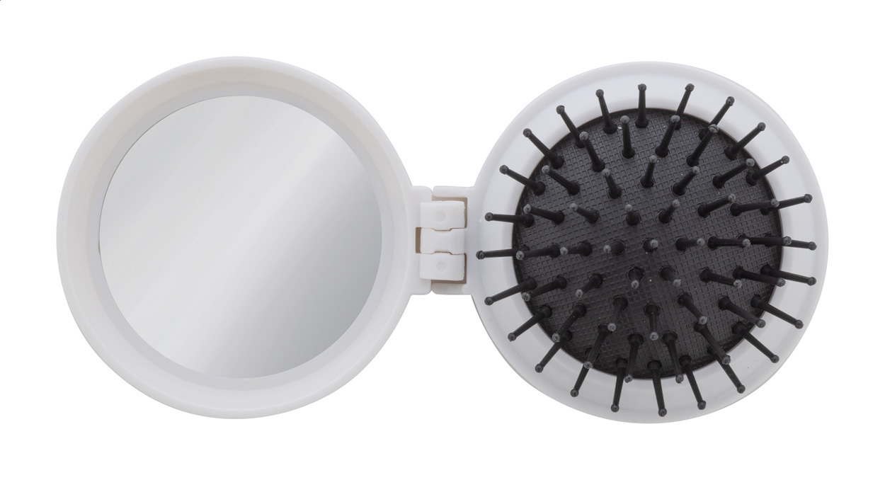 Skládací kartáč na vlasy z recyklovaného ABS s kapesním zrcátkem.