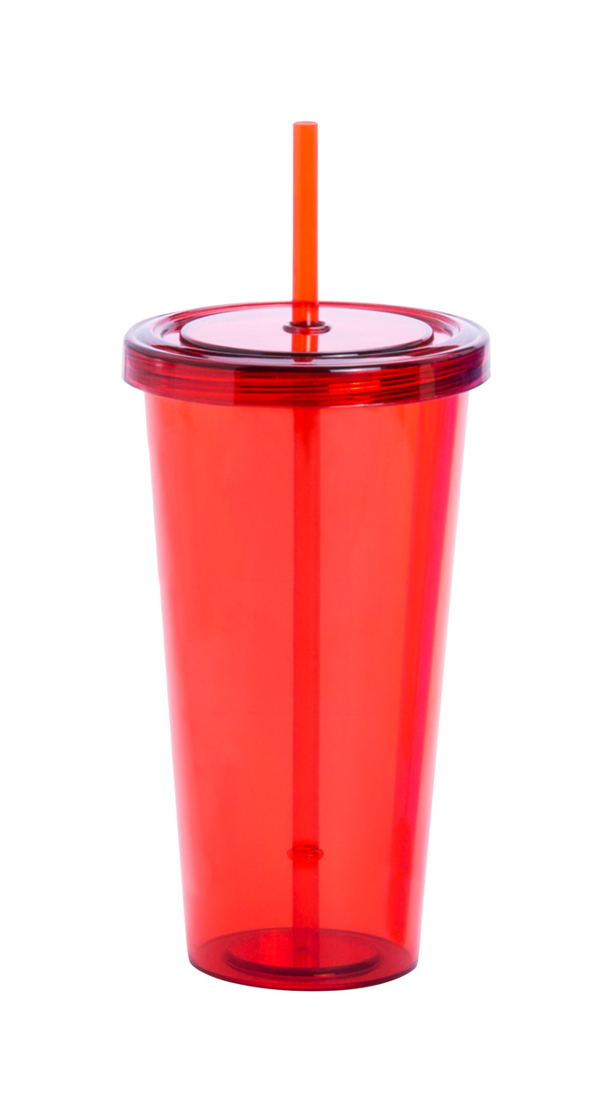 Barevný, plastový kelímek na pití s brčkem, 750 ml.