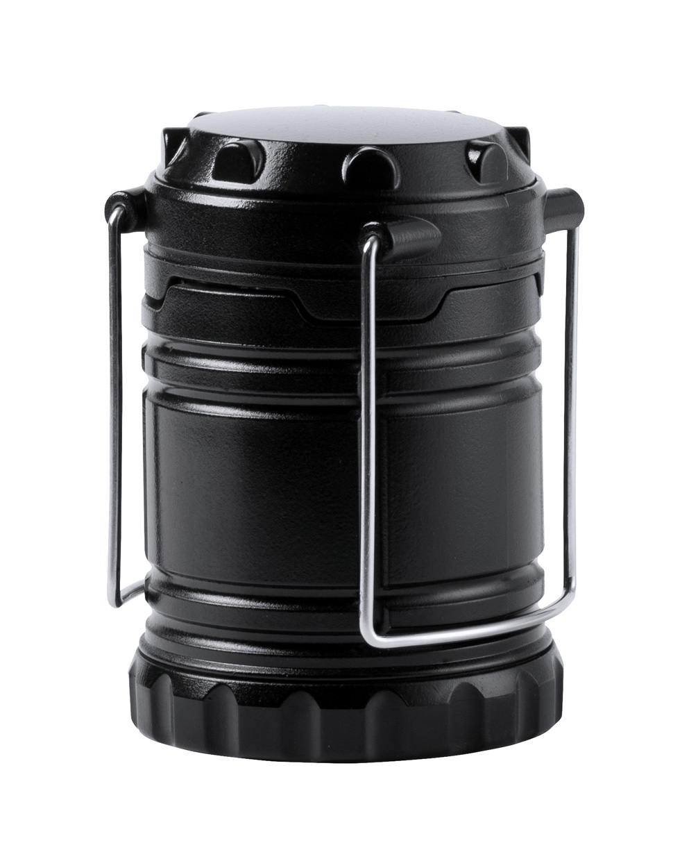 Přenosná kempingová lampa s kovovými uchy a 30 LED diodami ve 3 COB světlech. Dodáváno bez 3 AAA baterií. V dárkové krabičce.