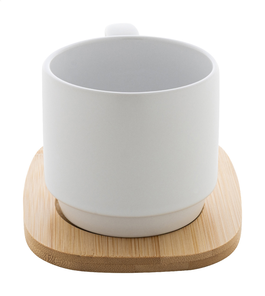 Vysoce kvalitní keramický hrnek s matným vnějším a lesklým vnitřním povrchem. Včetně bambusového servírovacího podnosu. 220 ml. V krabičce z kraftového papíru.