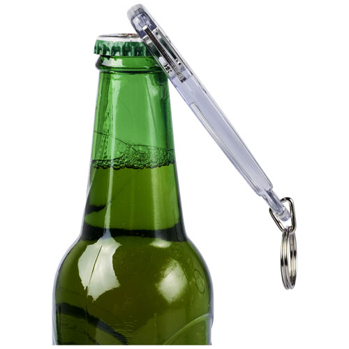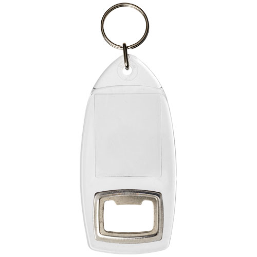 Čirá klíčenka R1 s otvírákem na láhve a s kovovým kroužkem. Kovový kroužek má plochý profil, který je ideální pro korespondenci. Rozměry potištěné vložky: 4,0 cm x 3,2 cm.