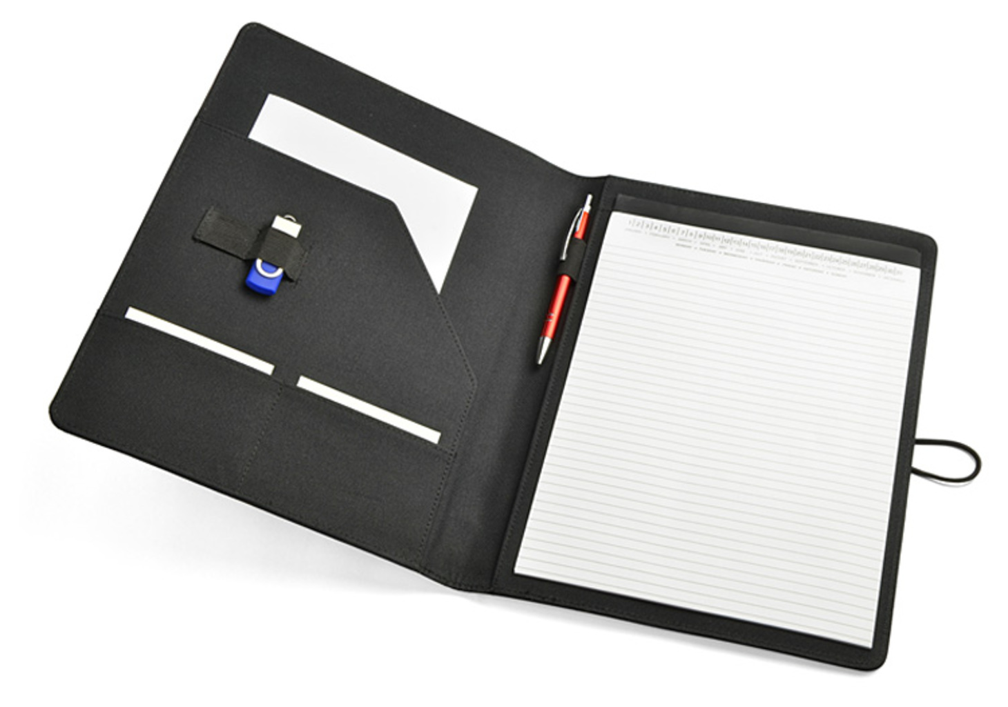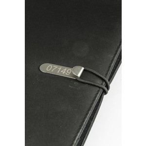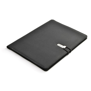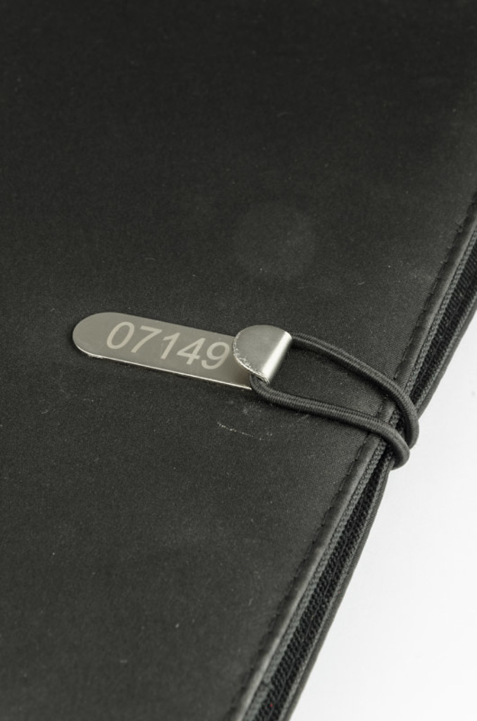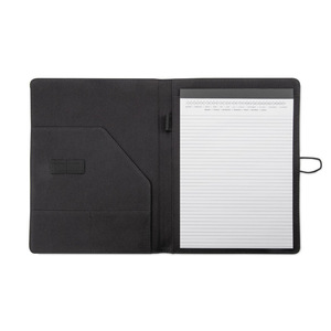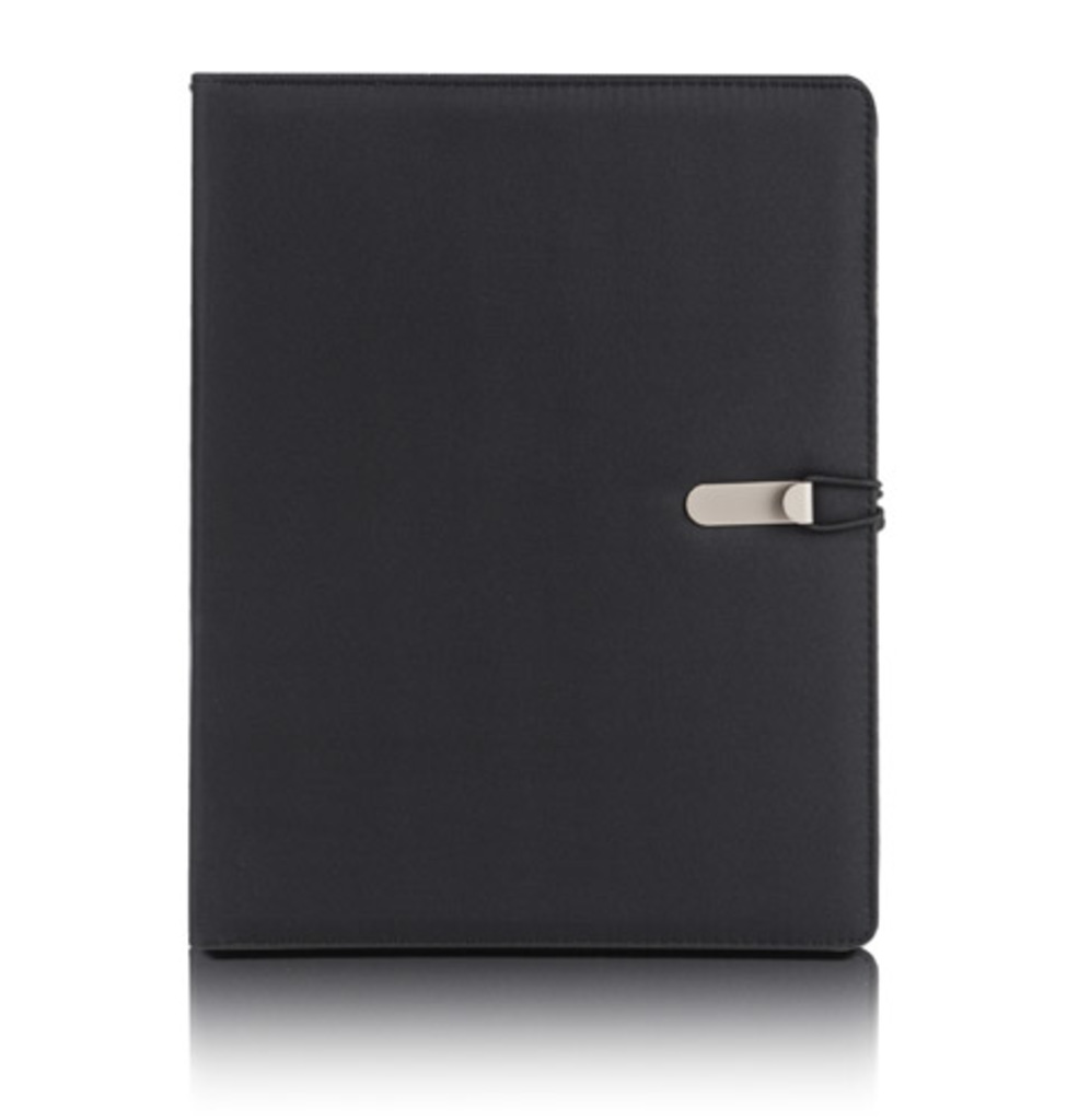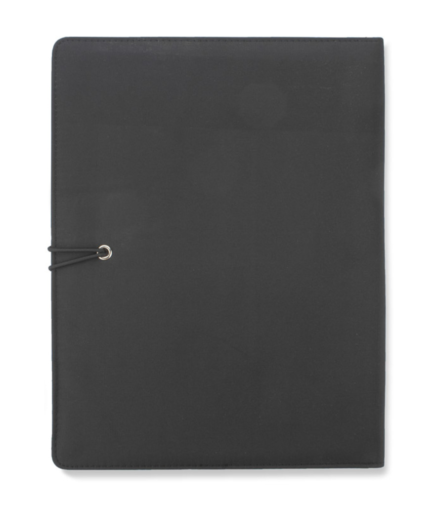 Prostý a moderní vzhled portfolia. Uvnitř je velká kapsa, 2 malé kapsy, 2 držáky USB paměťových karet, místo pro pero, sešit. Portfolio je uzavřeno elastickým pásem připojeným k kovovému háčku. Sešit není přilepený na obalu, ale pouze vložen do kapsy, což umožňuje jeho výměnu.