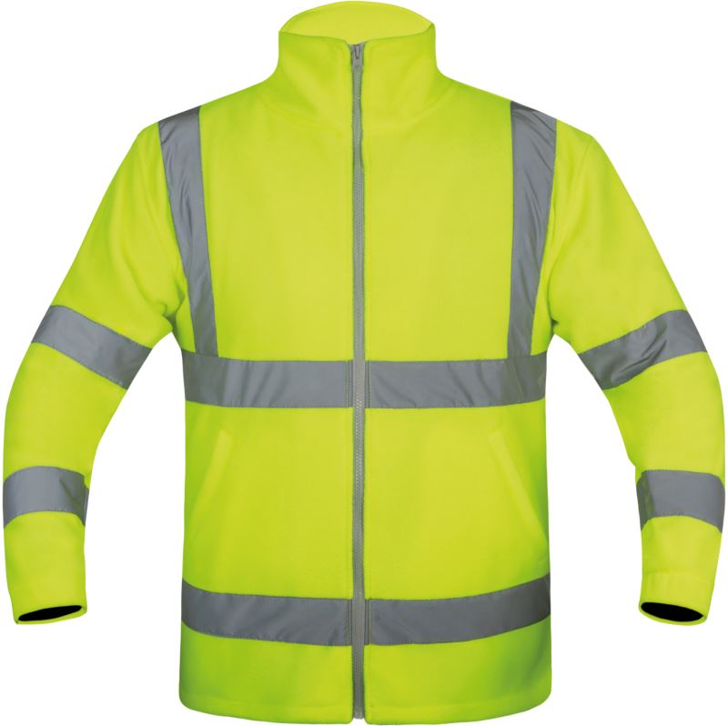 Elastické manžety ze stejné látky, certifikováno podle EN ISO 20471+ A1 třída 3, 2 reflexní pruhy na rukávech, záruka reflexních vlastností pro 25 mycích cyklů na 40°, 1 reflexní pruh přes každé rameno, dva reflexní pruhy široké 5 cm kolem těla