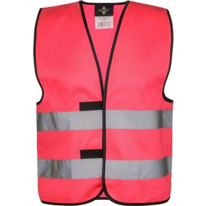Lemovaná černým polyesterovým lemem, nastavení velikosti pomocí 2 suchých zipů, certifikováno podle EN ISO 20471, neon pink a neon green certifikace EN 17353 typ AB3 (viditelnost za denního světla a tmy), dva reflexní pruhy široké 5 cm
