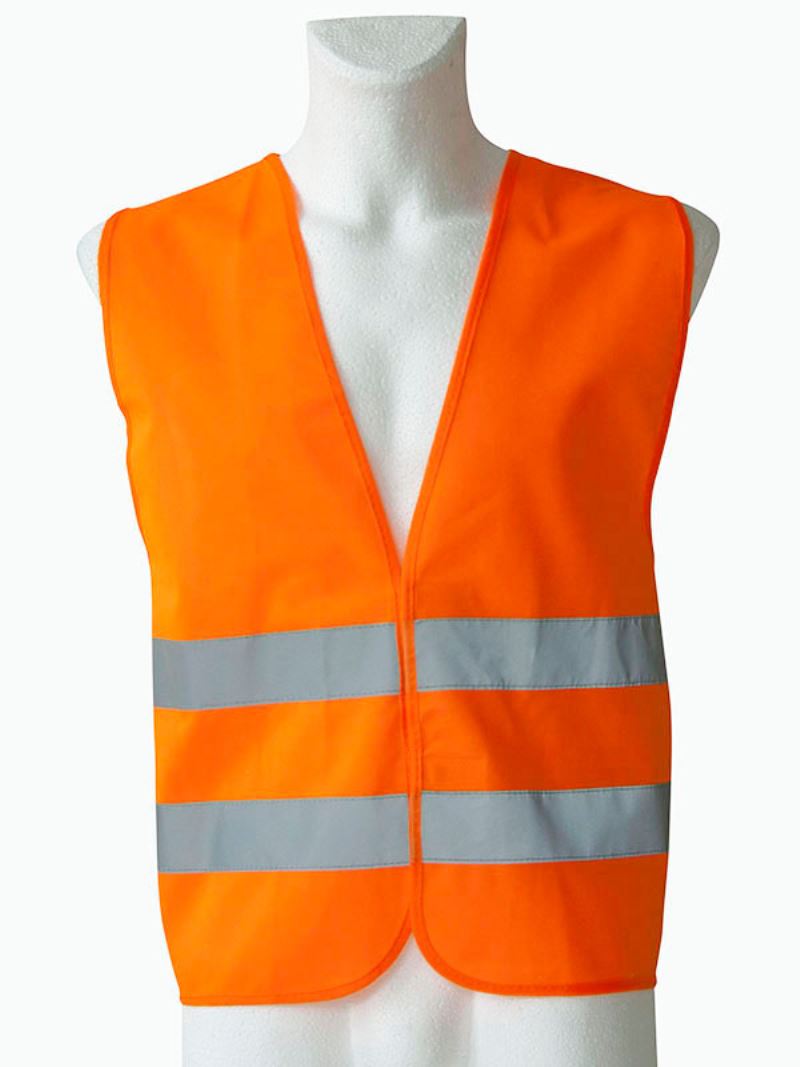 Nastavení velikosti pomocí 2 suchých zipů, vhodná jako reflexní vesta do auta, certifikováno podle EN ISO 20471, dva reflexní pruhy široké 5 cm kolem těla