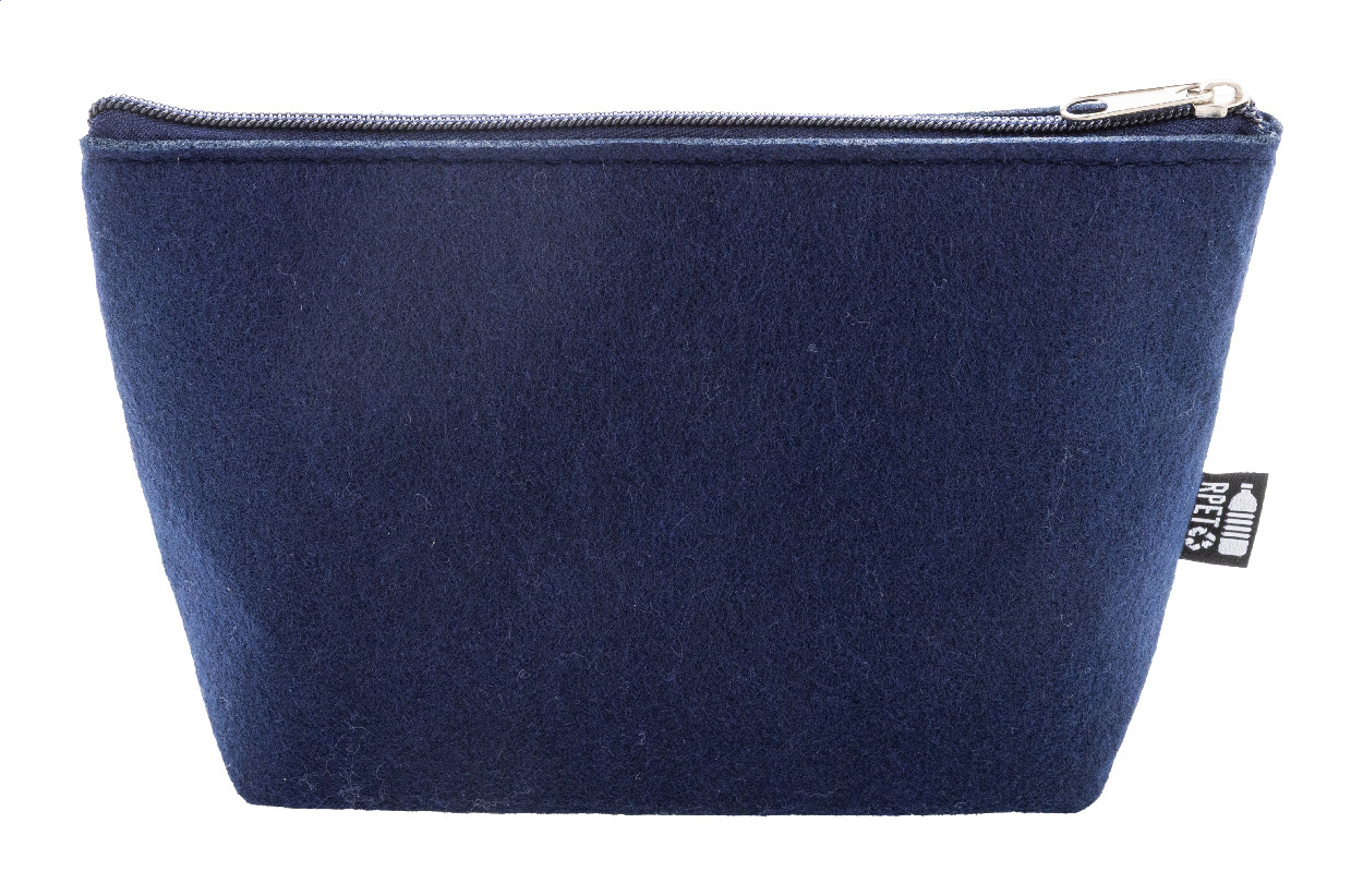 Kosmetická taška z RPET plsti na zip. S výraznou etiketou z RPET.