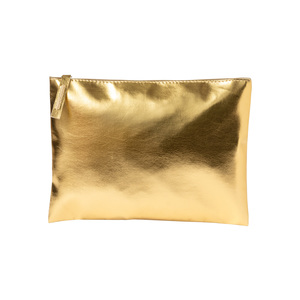 Kosmetická taštička na zip z PU kůže s metalickým povrchem.