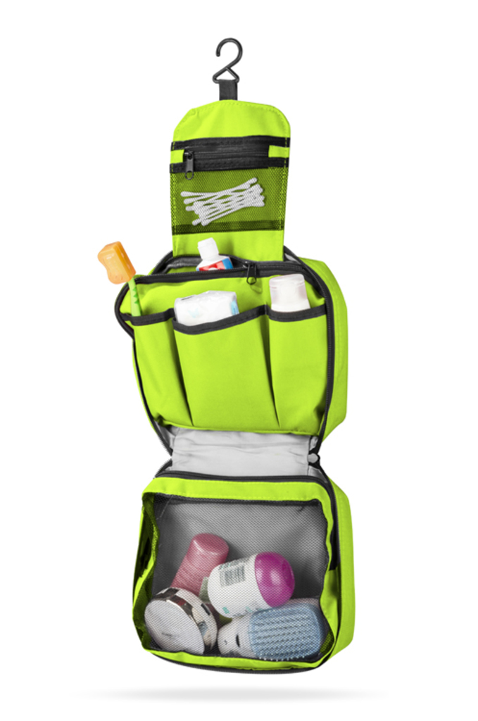 Kosmetická taštička MURA je užitečný, a dokonce i nezbytný výrobek během cestování. Díky třem přihrádkám a třem uzavíraným na zip kapsám je kosmetická taštička prostorná a umožňuje vhodné uspořádání všech potřebných předmětů. Kosmetická taštička je vybavená věšákem, který umožňuje její zavěšení v toaletě. Kosmetická taštička je vyrobená z polyesteru 300D.
