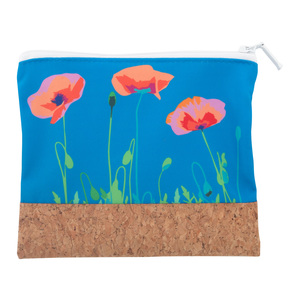 Na zakázku vyrobená kosmetická taštička na zip z polyesteru a přírodního korku. Cena zahrnuje celoplošně tištěnou sublimační grafiku, nezahrnuje tiskovou přípravu. Min. mn.: 50 ks.