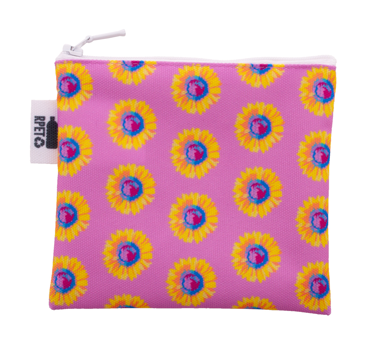 Na zakázku vyrobená kosmetická taštička na zip z 600D RPET polyesteru. S celoplošně tištěnou sublimační grafikou, nezahrnuje tiskovou přípravu. Min. mn.: 50 ks.