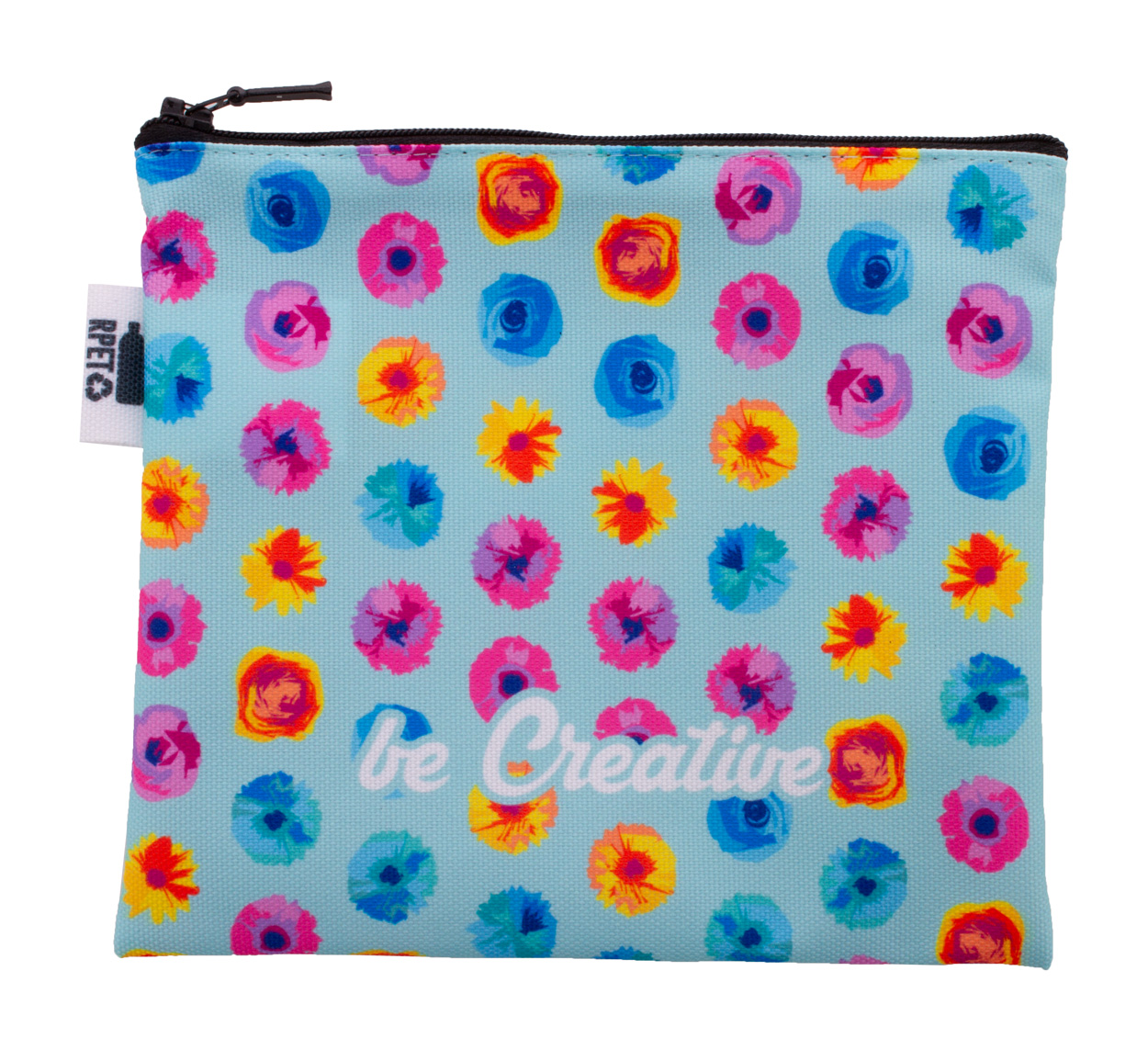 Na zakázku vyrobená kosmetická taštička na zip z 600D RPET polyesteru. S celoplošně tištěnou sublimační grafikou, nezahrnuje tiskovou přípravu. Min. mn.: 50 ks.