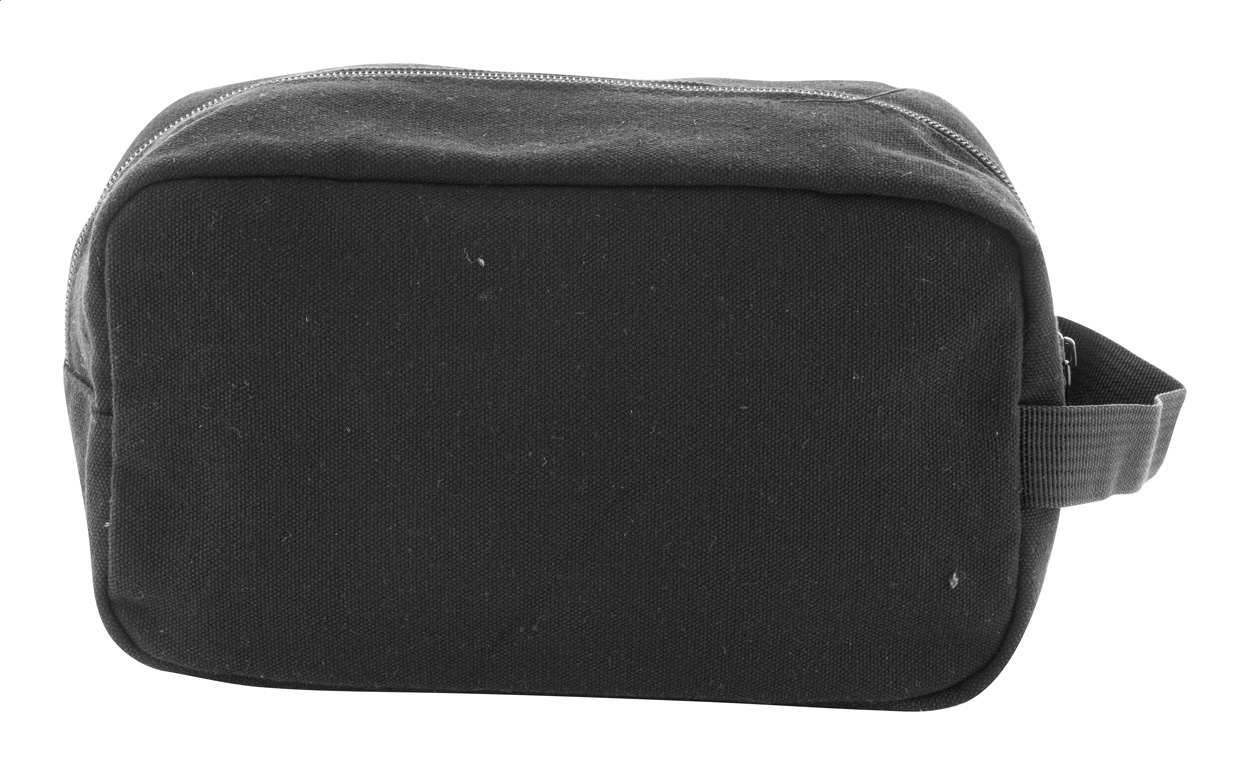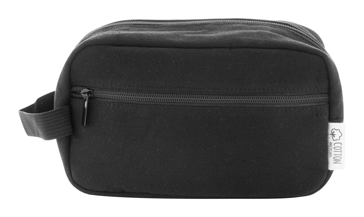 Kosmetická taštička z recyklovaného plátna se dvěma přihrádkami na zip a rukojetí. 70% recyklovaná bavlna a 30% RPET polyester. S výrazným štítkem z recyklované bavlny.