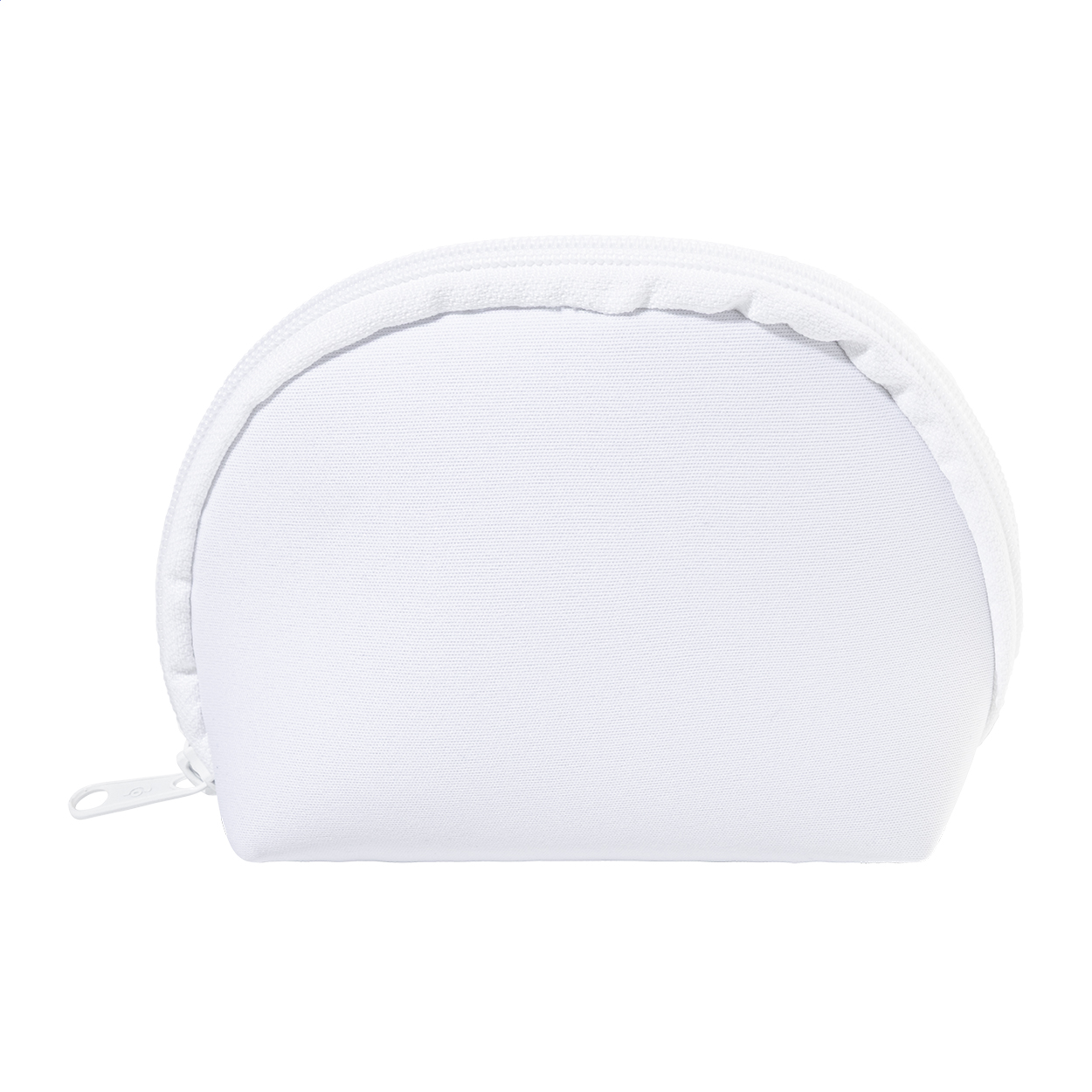 Kosmetická taštička na zip z RPET neoprenu vyrobená na zakázku. S výraznou RPET etiketou a sublimačním potiskem po celém obvodu, cena nezahrnuje tiskovou přípravu. Min. mn.: 50 ks.