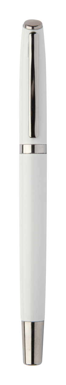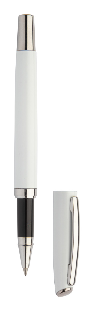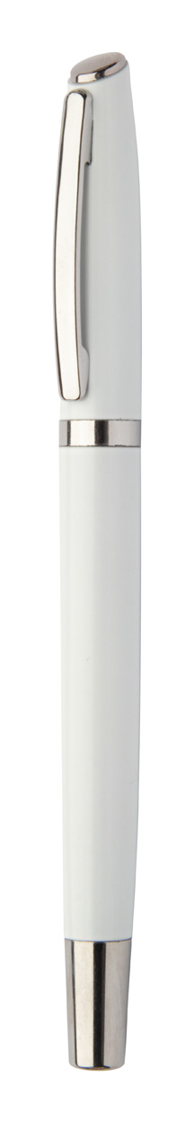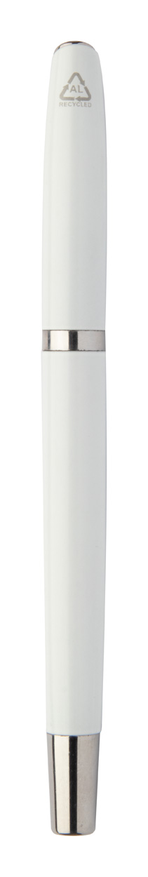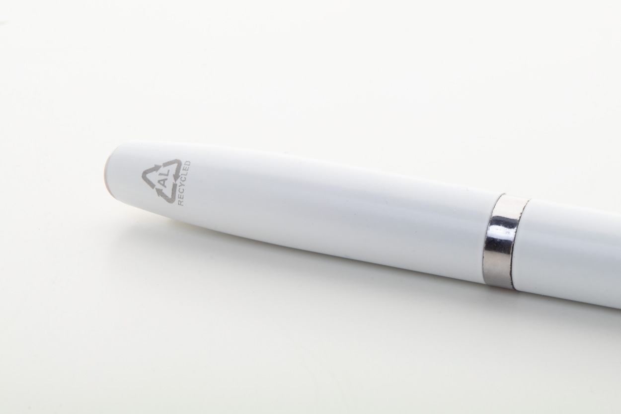 Sada per z recyklovaného hliníku s rollerem a kuličkovým perem v černé papírové dárkové krabičce. S modrou náplní.