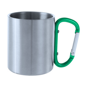 Hrnek z nerez oceli s barevnou karabinou, 200 ml. V dárkové krabičce.