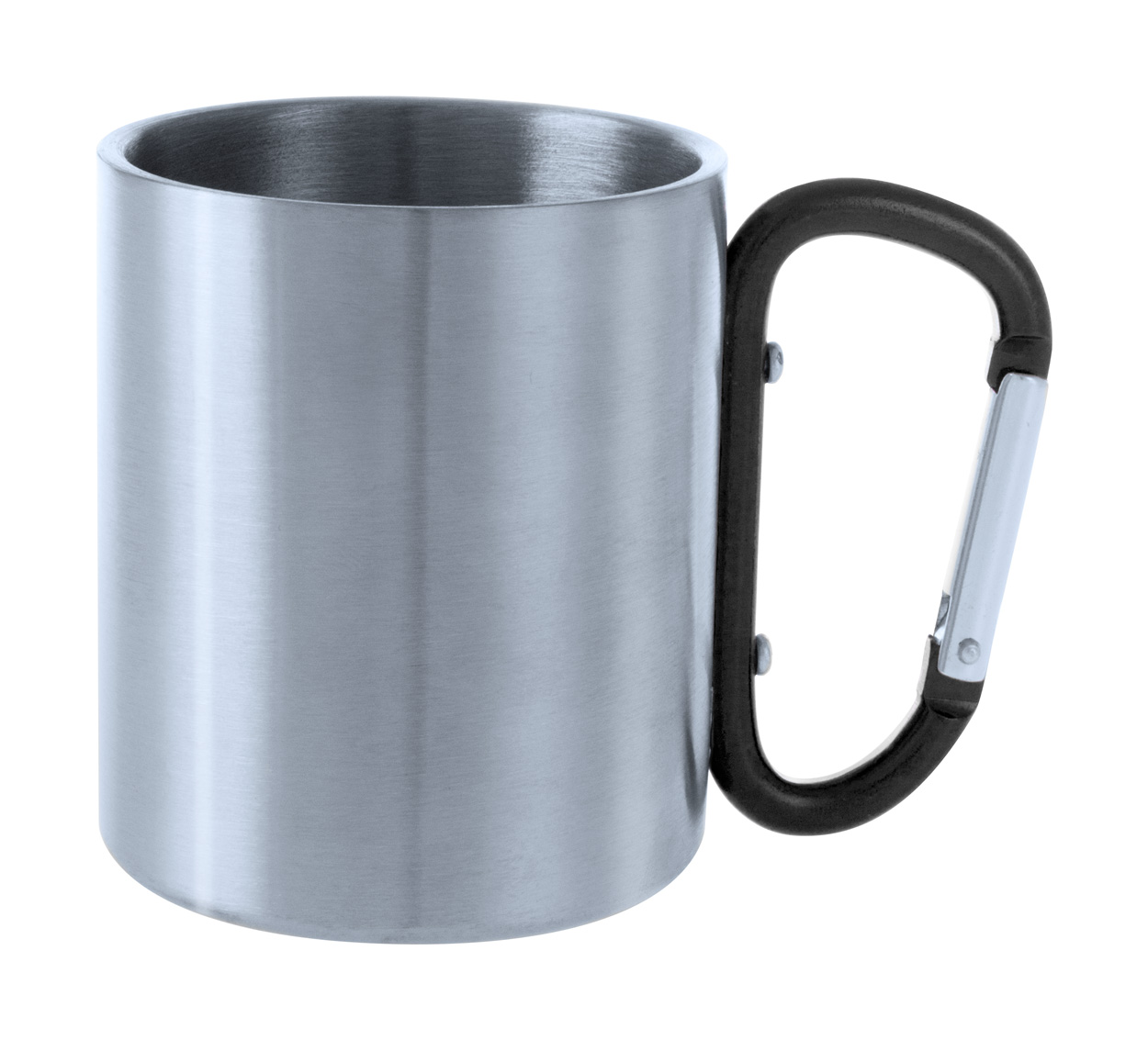 Hrnek z nerez oceli s barevnou karabinou, 200 ml. V dárkové krabičce.