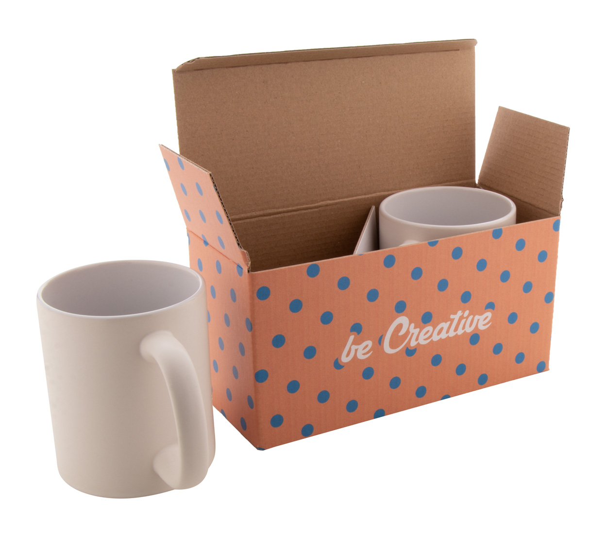 Na zakázku vyrobená celobarevně potištěná krabička z vlnité lepenky na 2 ks hrnků 300-350 ml. Cena nezahrnuje tiskovou přípravu. Min. mn.: 50 ks.