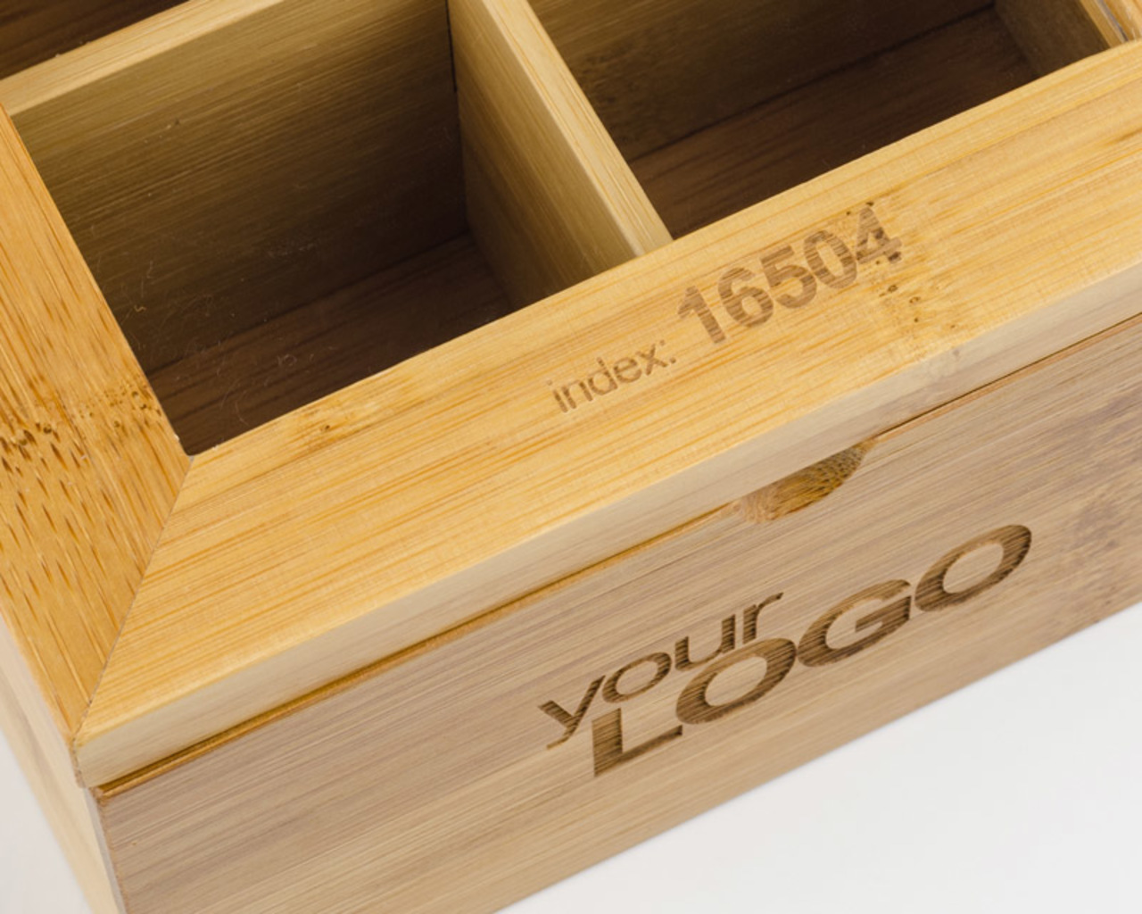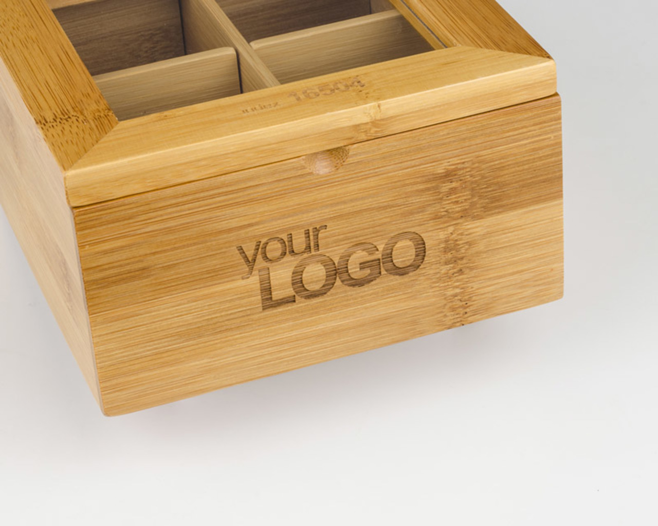 Stylová krabička na čaj z bambusu. Krabička je rozdělena do čtyř částí, což usnadňuje ukládání různých druhů čaje.