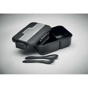 Krabička na oběd se sadou příborů. 2 sekce. Vyrobeno z plastu. Celkový objem : 1000 ml.