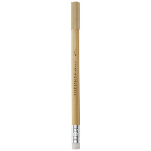 Bambusové bezinkoustové pero Krajono nevyžaduje inkoustové bombičky ani náplň. Grafitově černá špička pera je navržena tak, aby zanechávala viditelné stopy při kontaktu s povrchem pro psaní. Výběr pera vyrobeného z bambusu je udržitelnější rozhodnutí a podporuje používání obnovitelných materiálů. Pero má v horní části gumu. Délka psaní: 1500 metrů. Rozměr hrotu: 0,5 mm.