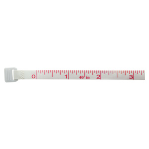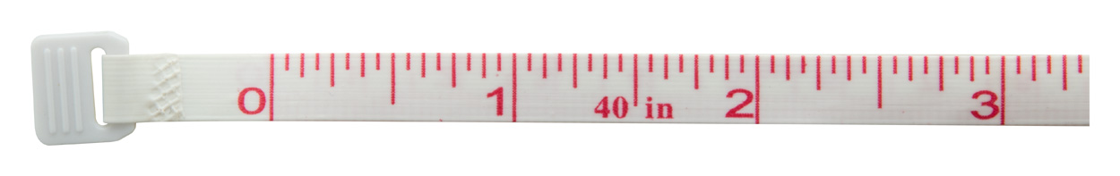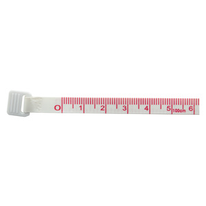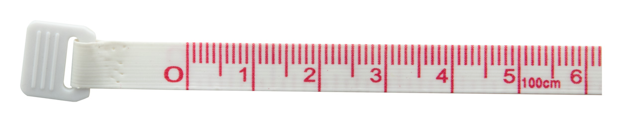 Plastový krejčovský metr se zámkem na knoflík, 1 m. S měřítky cm a palce.