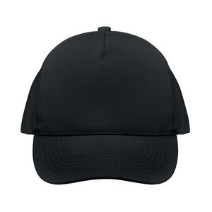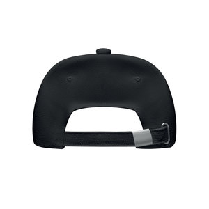 Pětipanelová baseballová čepice z broušené organické 250g bavlny s nastavitelným páskem a zapínáním na kovovou přezku vzadu. Čtyři kovová odvětrávací očka ve stejné barvě.