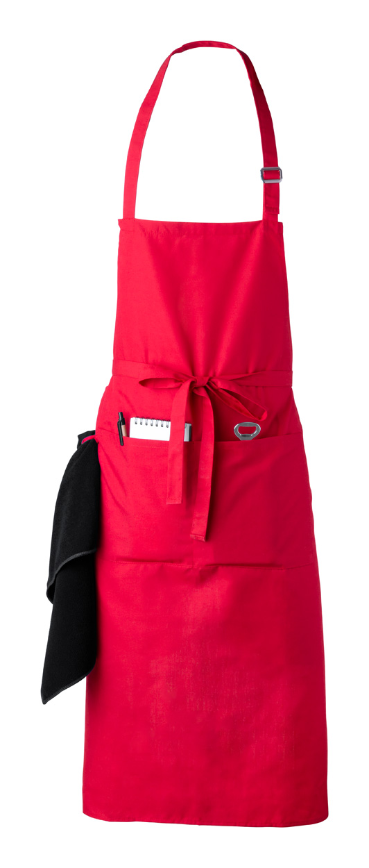 Barevná zástěra s předními kapsami. Materiál 80% polyester/20% bavlna.