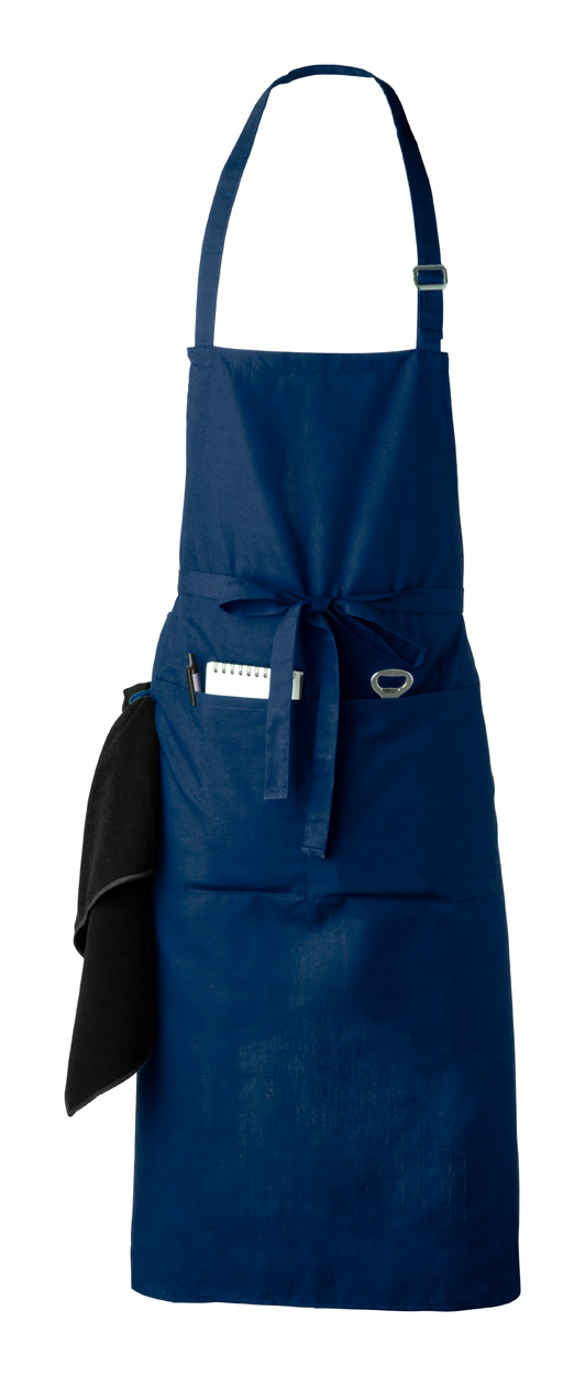 Barevná zástěra s předními kapsami. Materiál 80% polyester/20% bavlna.
