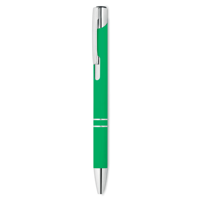 Kuličkové pero v pogumovaném vzhledu s lesklými doplňky. Modrý inkoust.