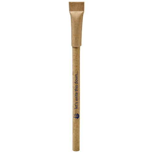 Kuličkové pero z recyklovaného papíru s víčkem. Délka zápisu +/- 700 m. Kalibrované barvy se mohou lišit.
