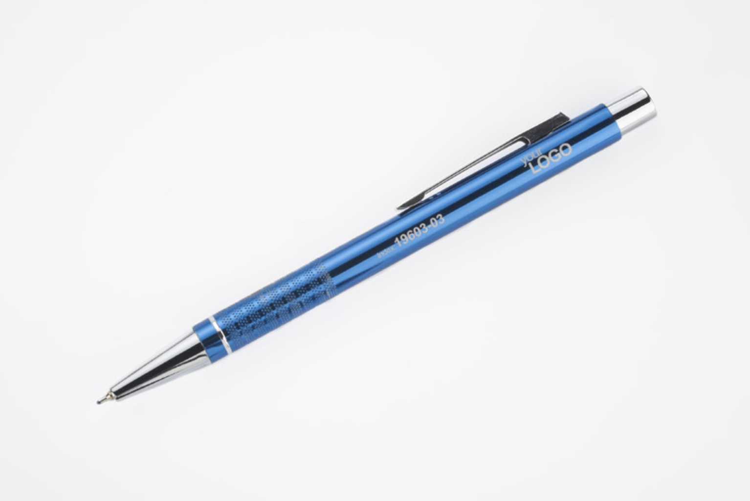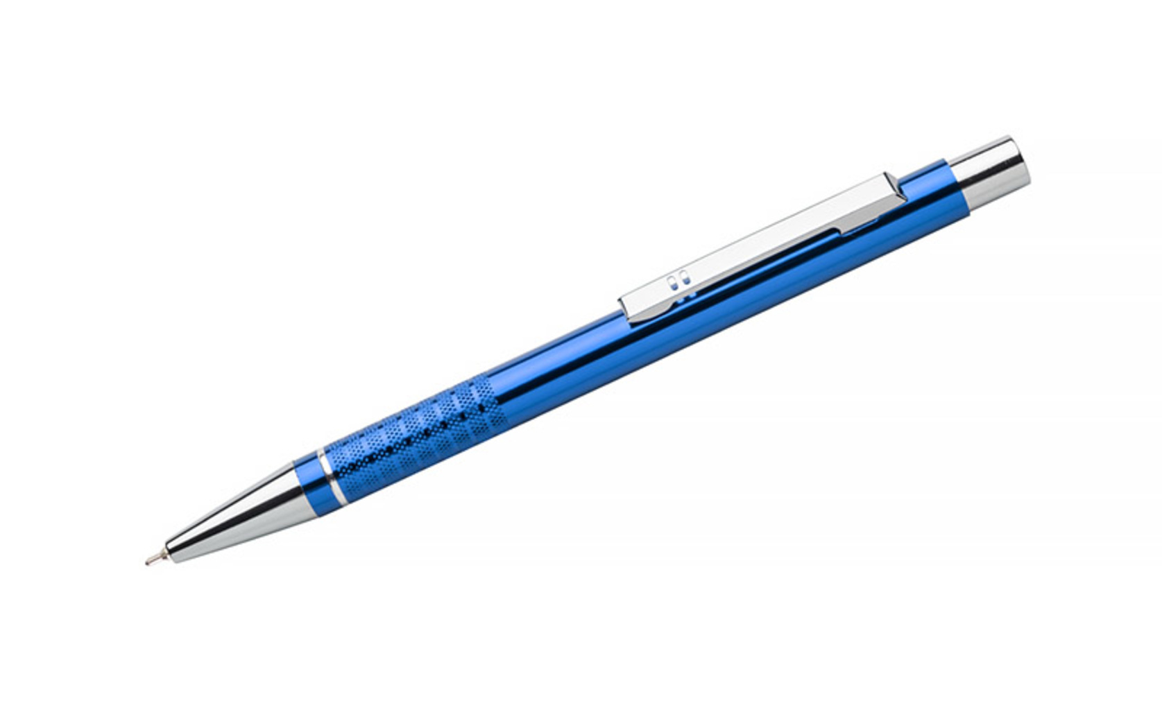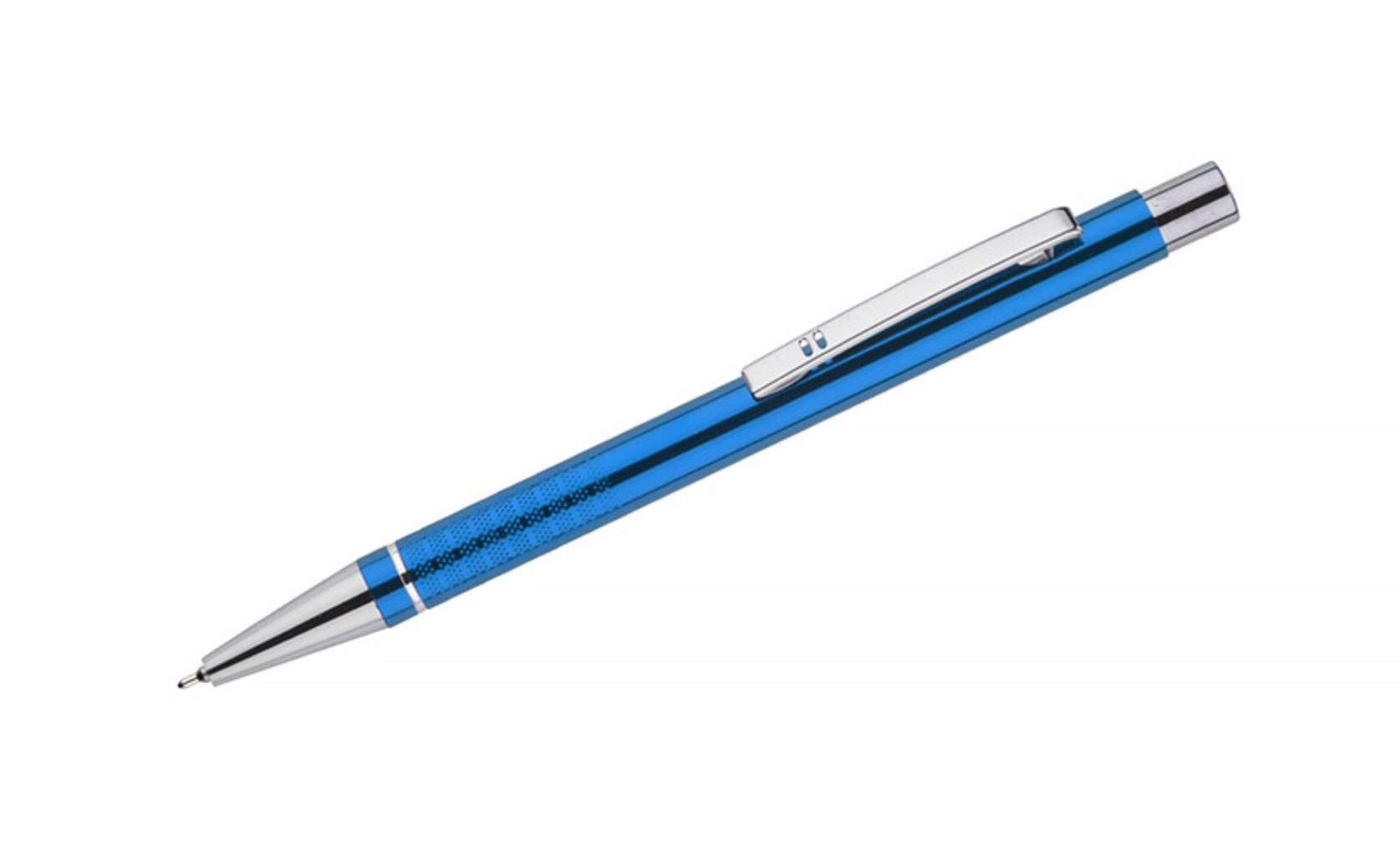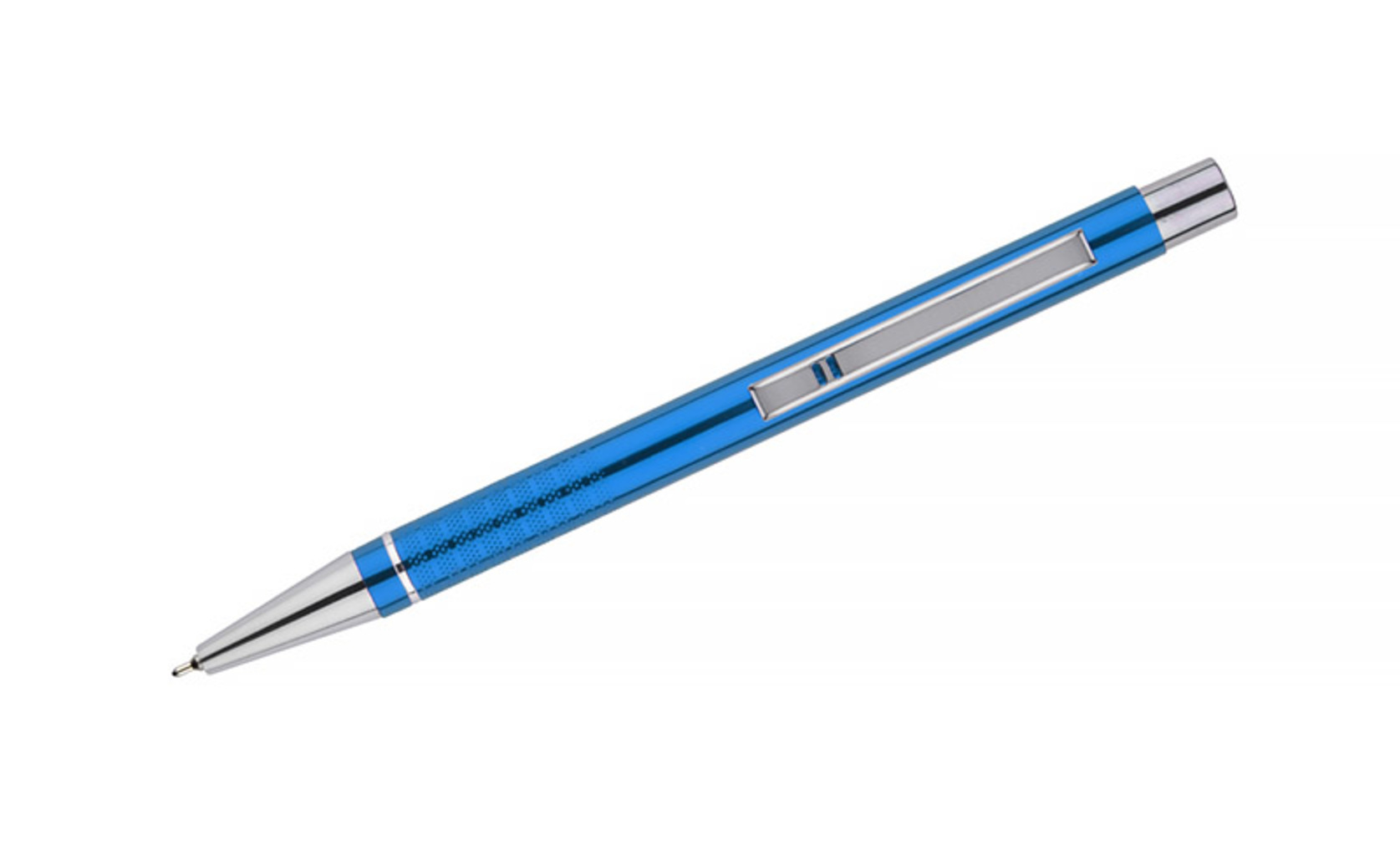 BONITO pen je klasická elegantní kovová pera ve metalických barvách se chromově pozlacenými finiši. Vyrobeno z hliníku. Tělo je ozdobeno stříbrným prstenem na dně a pásky s jemně chromovanou strukturou. Pero s kuličkovým perom obsahuje nový typ náplně s polo-gelovou inkoustem, tloušťkou 0,7 mm. Vloženo modré.