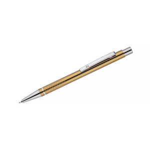 BONITO pen je klasická elegantní kovová pera ve metalických barvách se chromově pozlacenými finiši. Vyrobeno z hliníku. Tělo je ozdobeno stříbrným prstenem na dně a pásky s jemně chromovanou strukturou. Pero s kuličkovým perom obsahuje nový typ náplně s polo-gelovou inkoustem, tloušťkou 0,7 mm. Vloženo modré.