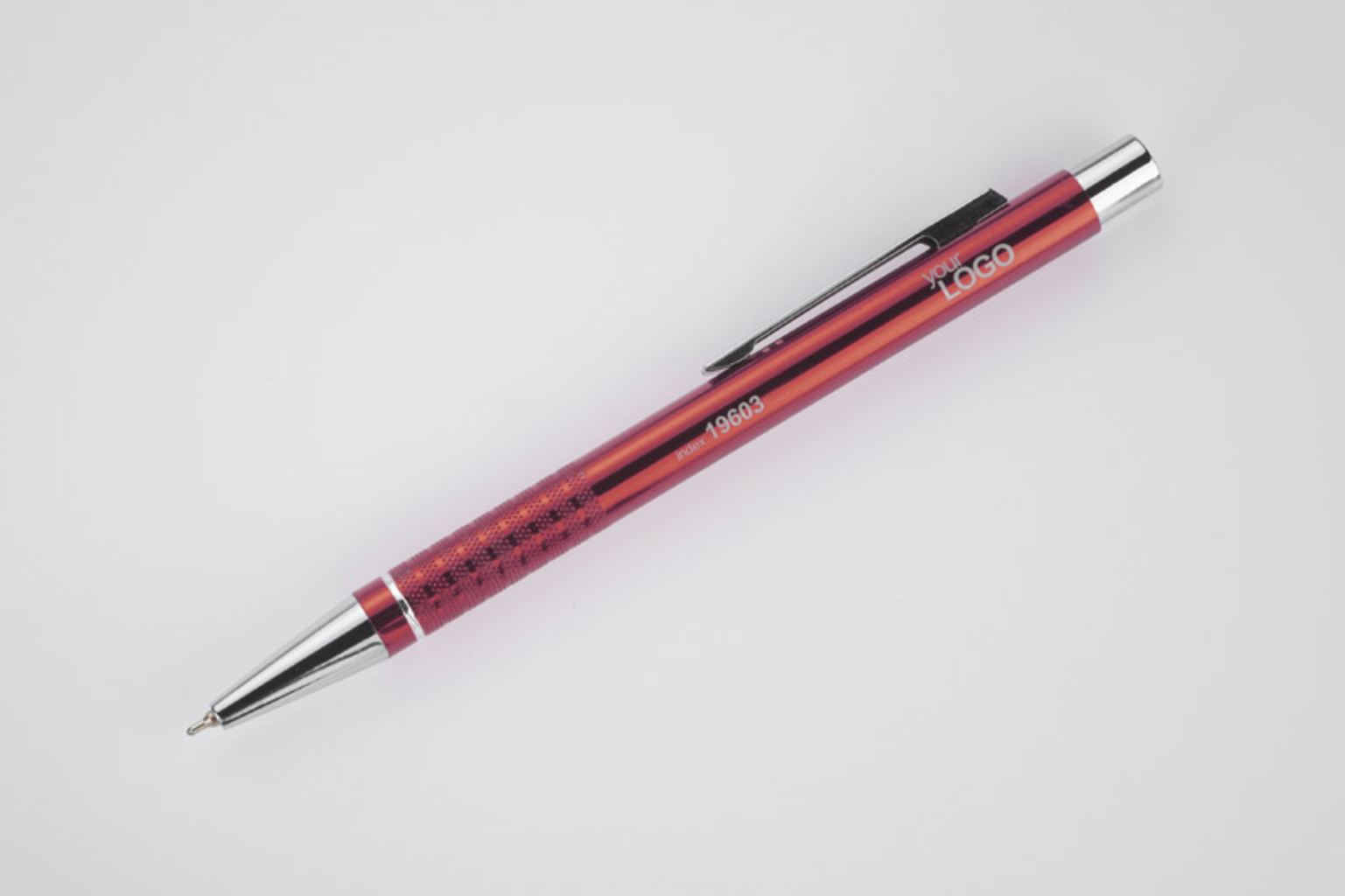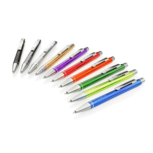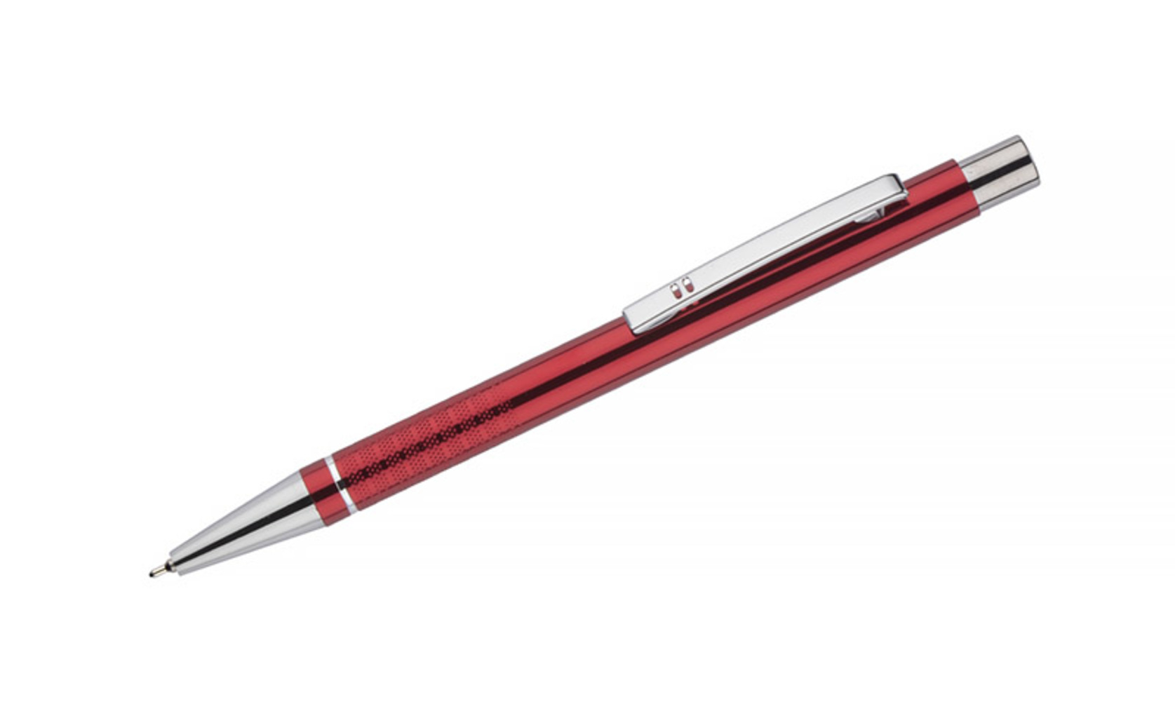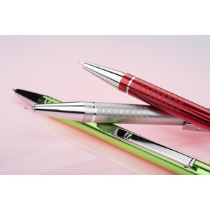 BONITO pen je klasická elegantní kovová pera ve metalických barvách se chromově pozlacenými finiši. Vyrobeno z hliníku. Tělo je ozdobeno stříbrným prstenem na dně a pásky s jemně chromovanou strukturou. Pero s kuličkovým perom obsahuje nový typ náplně s polo-gelovou inkoustem, tloušťkou 0,7 mm. Vloženo modré.