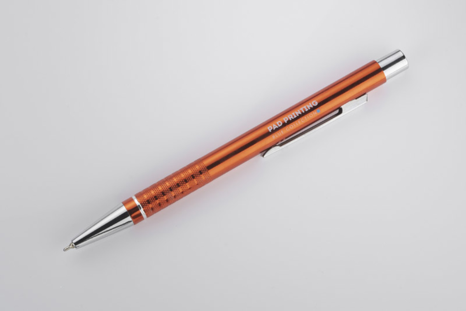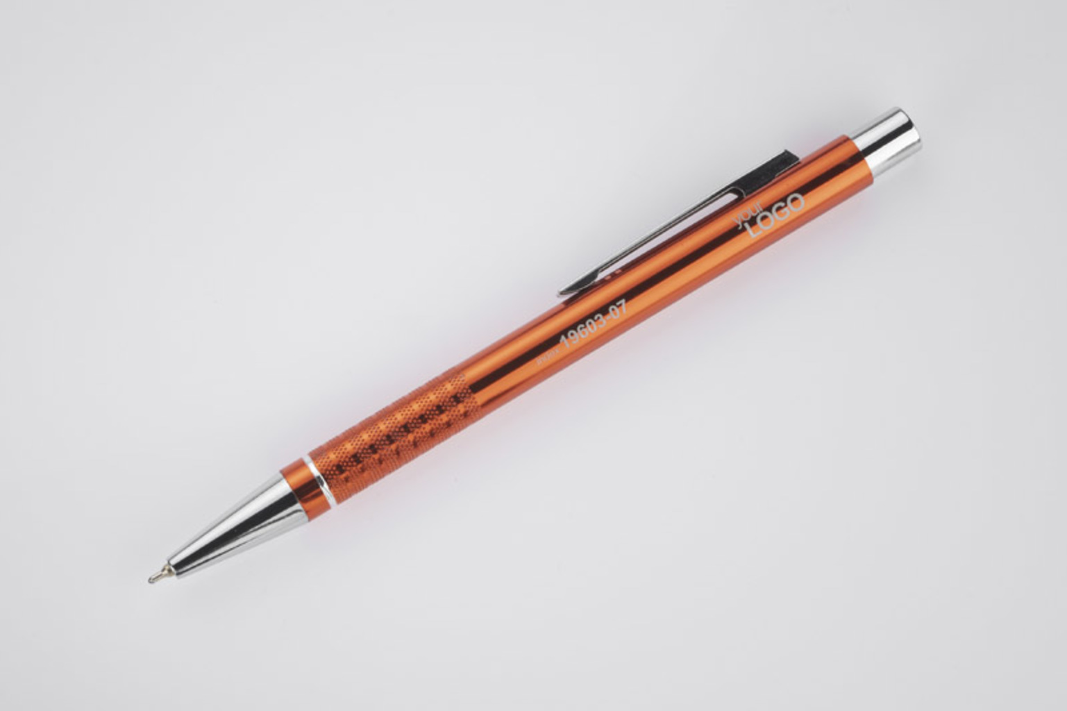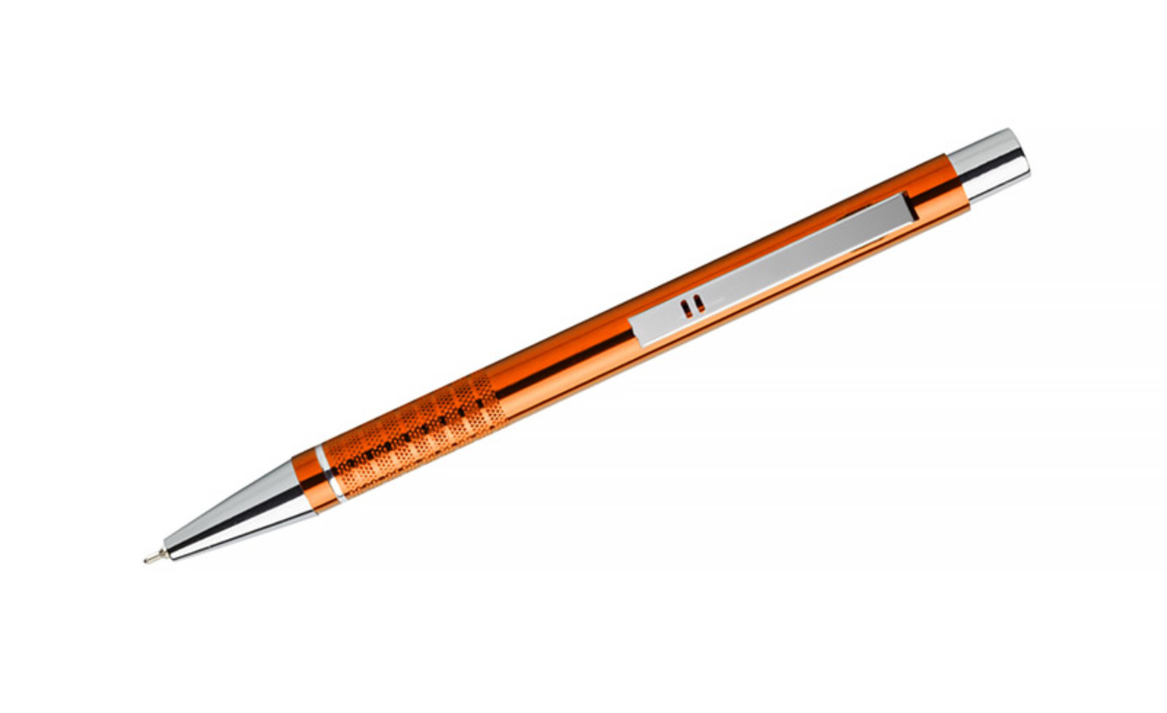 BONITO pen je klasická elegantní kovová pera ve metalických barvách se chromově pozlacenými finiši. Vyrobeno z hliníku. Tělo je ozdobeno stříbrným prstenem na dně a pásky s jemně chromovanou strukturou. Pero s kuličkovým perom obsahuje nový typ náplně s polo-gelovou inkoustem, tloušťkou 0,7 mm. Vloženo modré.
