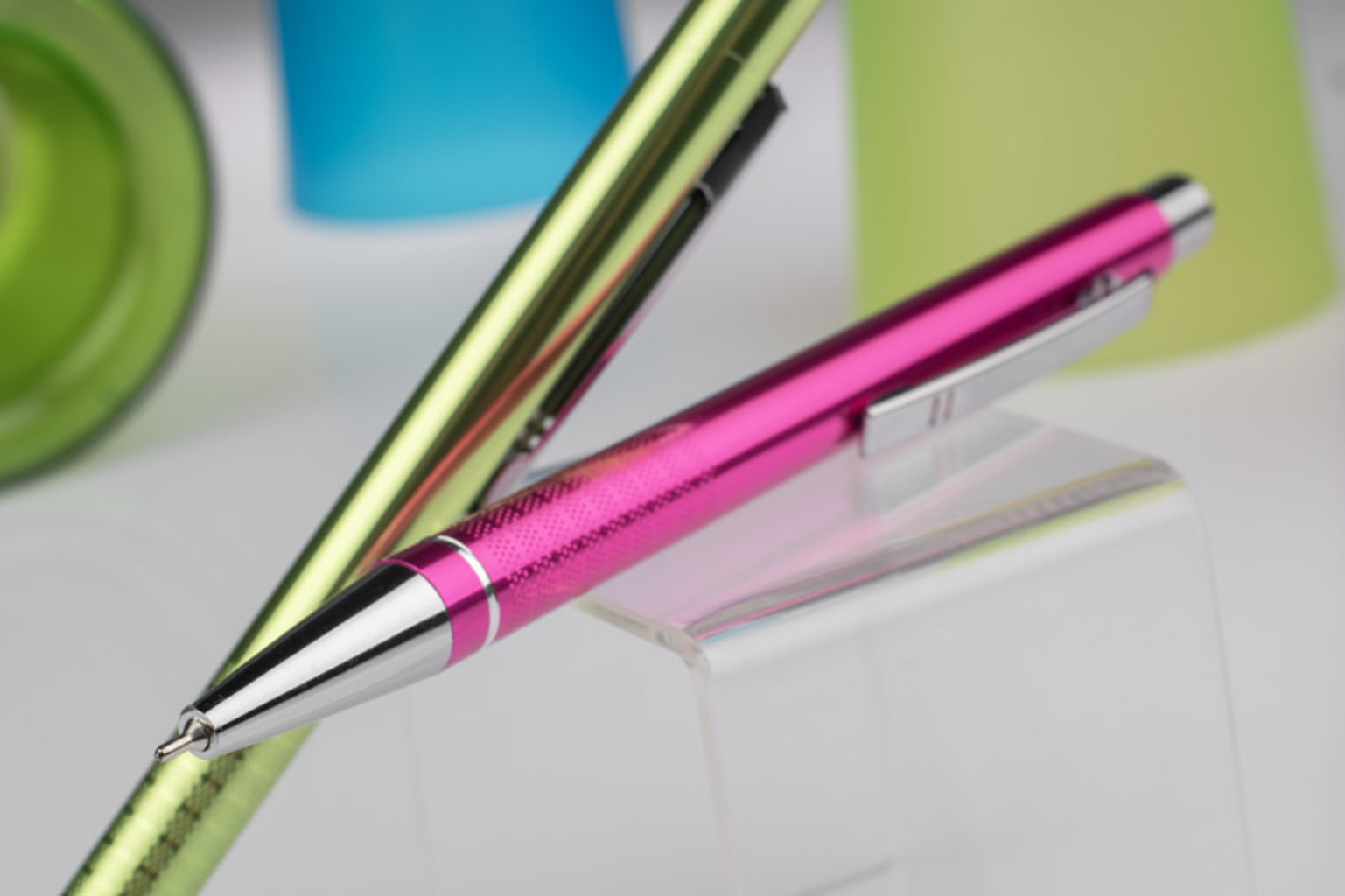 BONITO pen je klasická elegantní kovová pera ve metalických barvách se chromově pozlacenými finiši. Vyrobeno z hliníku. Tělo je ozdobeno stříbrným prstenem na dně a pásky s jemně chromovanou strukturou. Pero s kuličkovým perom obsahuje nový typ náplně s polo-gelovou inkoustem, tloušťkou 0,7 mm. Vloženo modré.